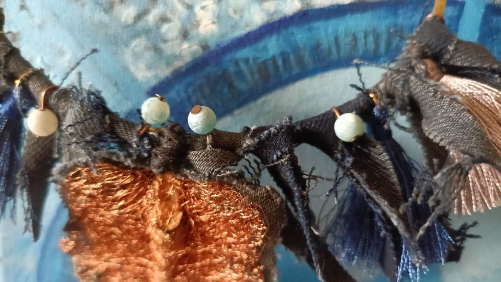 – łączą różnorodne materiały, m.in.: metal, tekstylia, pióra, drewno, siatkę miedzianą,