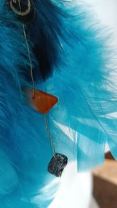 Ta ultralekka Kolia powstała z piórek, naturalnych kamieni: hematytu, bursztynu bałtyckiego i tektyty. Delikatna, a robi mocne wrażenie. Cieszy oko i kreatywną duszę.