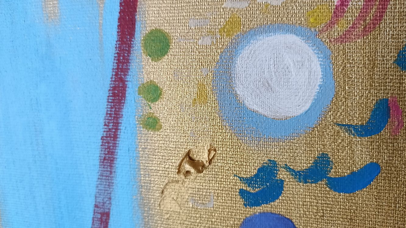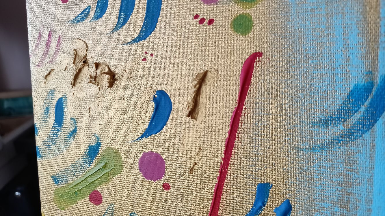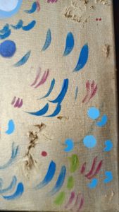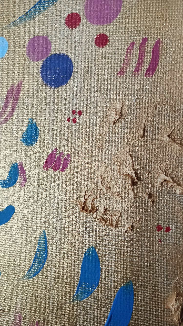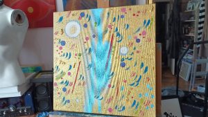 Obraz nietypowy w mojej twórczości – zdaje się, że kierowany potrzebą uchwycenia radości i złotych promieni ciepłego sezonu 🌞 Kompozycja lekka, radosna, złocista. Abstrakcja na grubym, solidnym blejtramie typu 3 D. Obraz nie zawiera płatków złota, które przydawały by mu wartości 😉, tym nie skuszę😄 – jakkolwiek, jeśli jest odpowiedzią na Twoje potrzeby estetyczne – zapraszam do zakupu! 45 na 45 cm