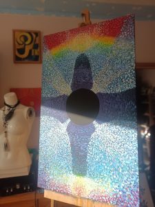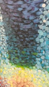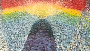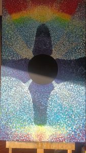 Jest pełen mocy – wielowarstwowa praca składająca się z wielu kropek barwnych, układających się we wzory, ilustrujące Przepływ.