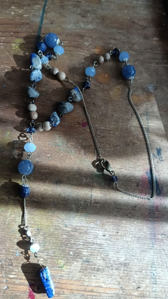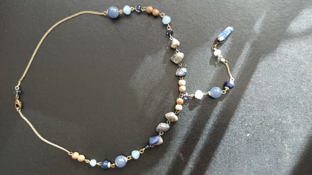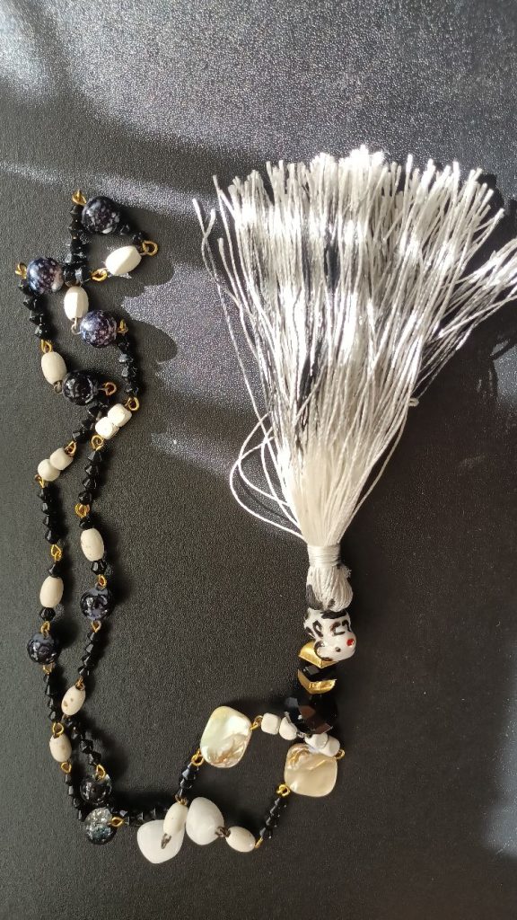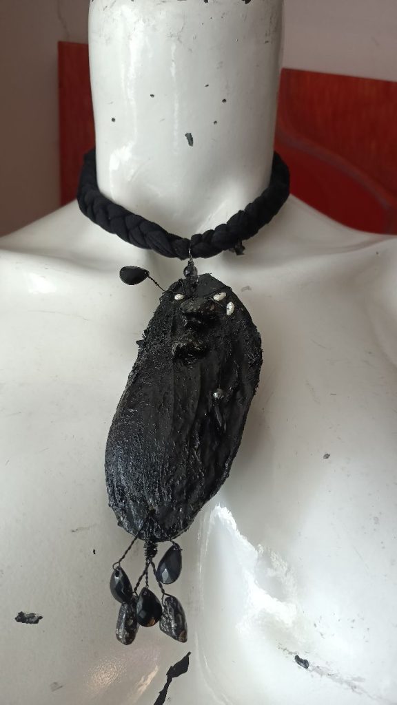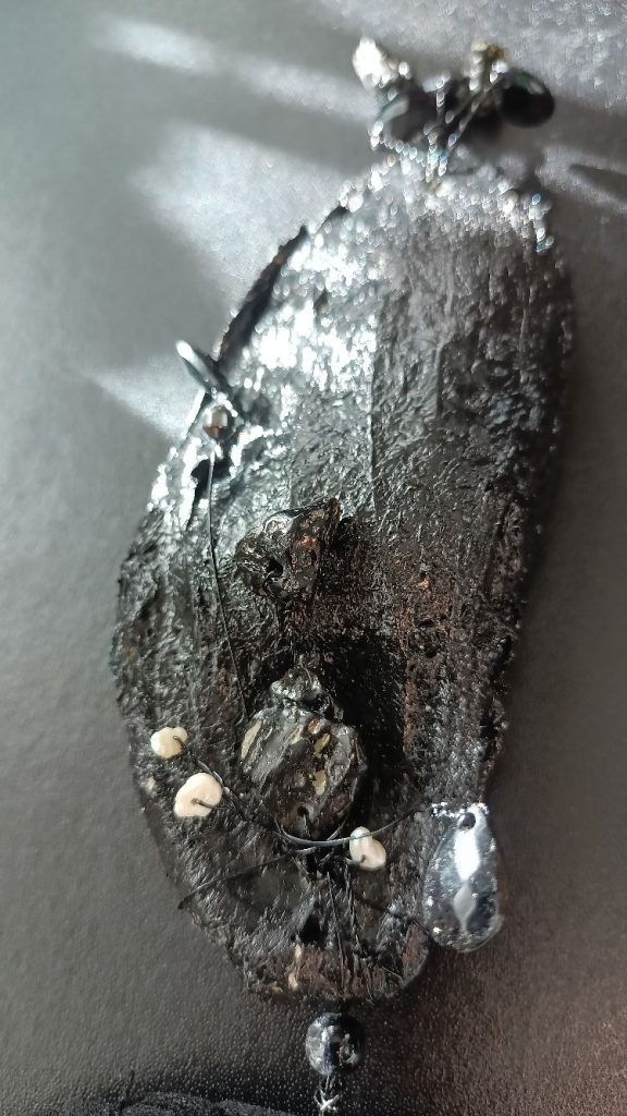 Ametystowy Budda i Kolia Jantar: ametysty, bursztyn bałtycki, kryształki, drewno (w tym laurowe), hematyt, nasiona z Portugalii, perły szklane.CyberPunk Kolia #upcycling #fantasy„Szaszłyki”Złota Obroża z Chwostem